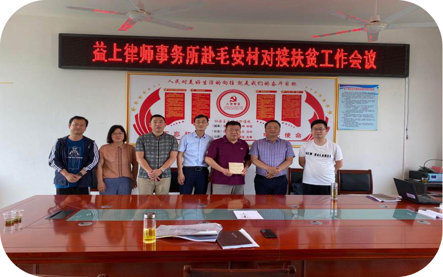 益上律师事务所与毛安村进行了深入交流,详细了解了这些贫困户的实际情况,征询具体的扶贫建议。随后益上律师事务所将入户了解相关贫困户的实际困难,并根据了解到的情况,结合律师的行业特征,制定具有针对性和行业特色的扶贫措施,并切实贯彻执行。为脱贫攻坚的最终胜利贡献自己的力量。