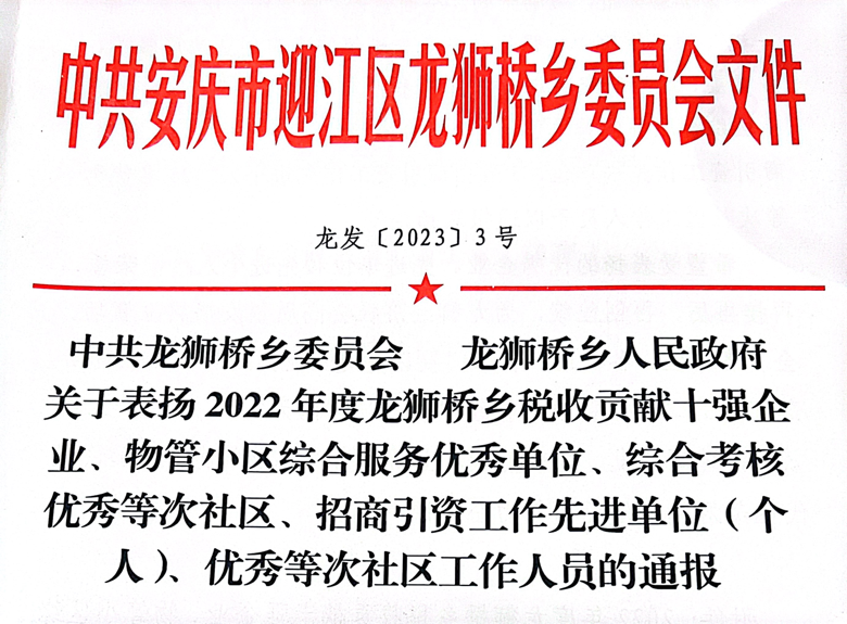 大会中,中共龙狮桥乡委员会、龙狮桥乡人民政府对2022年度龙狮桥乡税收贡献十强企业、物管小区综合服务优秀单位、综合考核优秀等次社区、招商引资工作先进单位(个人)、优秀等次社区工作人员予以通报表扬。